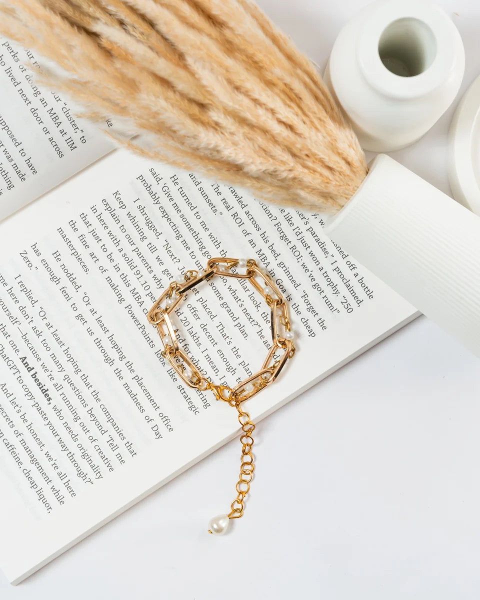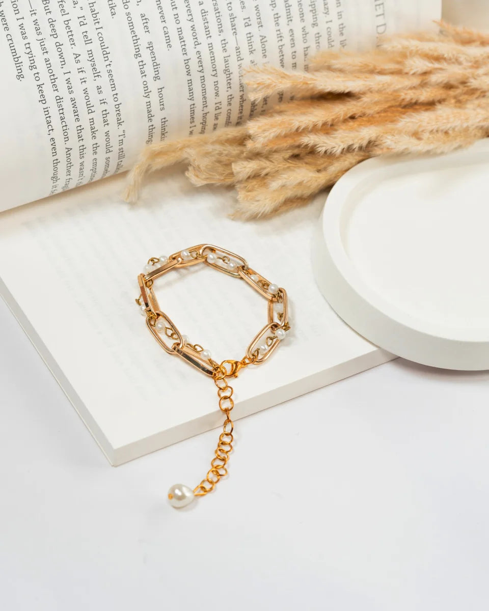Golden Pearl Chain Bracelet